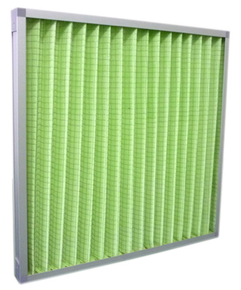 過濾材料是以折疊形式裝入高強度摸且硬紙板內,迎風面積增大,流入的空氣中的塵埃粒子被過濾材料有效阻擋在摺與摺之間。潔凈空氣從另一面均勻流出。因此氣流通過過濾網是平穩和均勻的。視過濾濾料不同。它所攔截粒子的粒經從0.5um到5um而不同。過濾效率也不同。