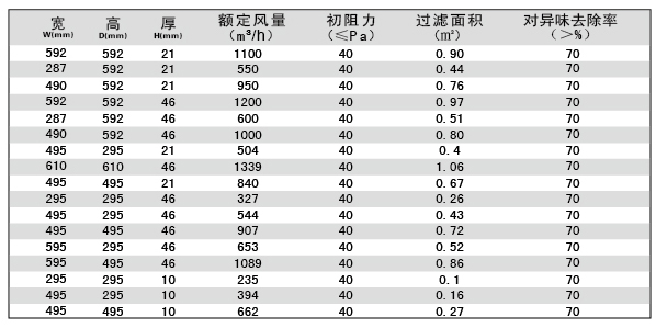 用戶選購指南-板式初效活性炭過濾器技術參數